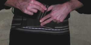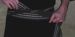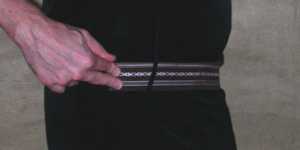 in the obi. If a tab is present, it is put under the obi to keep the rigid