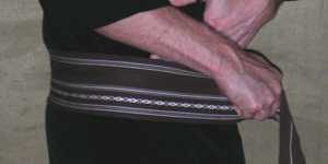 - The starting end of the obi is pulled out, wrapped around the remaining